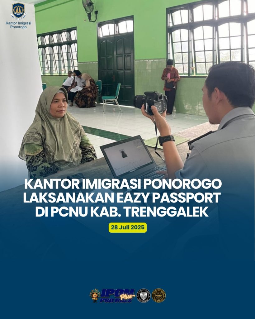 Kantor Imigrasi Ponorogo Laksanakan Eazy Passport di PCNU Kab. Trenggalek Kantor Imigrasi Ponorogo layani Eazy Passport di wilayah Kabupaten Trenggalek, Senin (28/07/2025). Bertempat di Aula Lantai 3 Gedung DPC Nahdatul Ulama Kabupaten Trenggalek, kegiatan Eazy Passport Imigrasi Ponorogo terlaksana dengan menggandeng KBIHNU, dengan jumlah total permohonan sebanyak 39 permohonan dari berbagai domisili di wilayah Kabupaten […]
